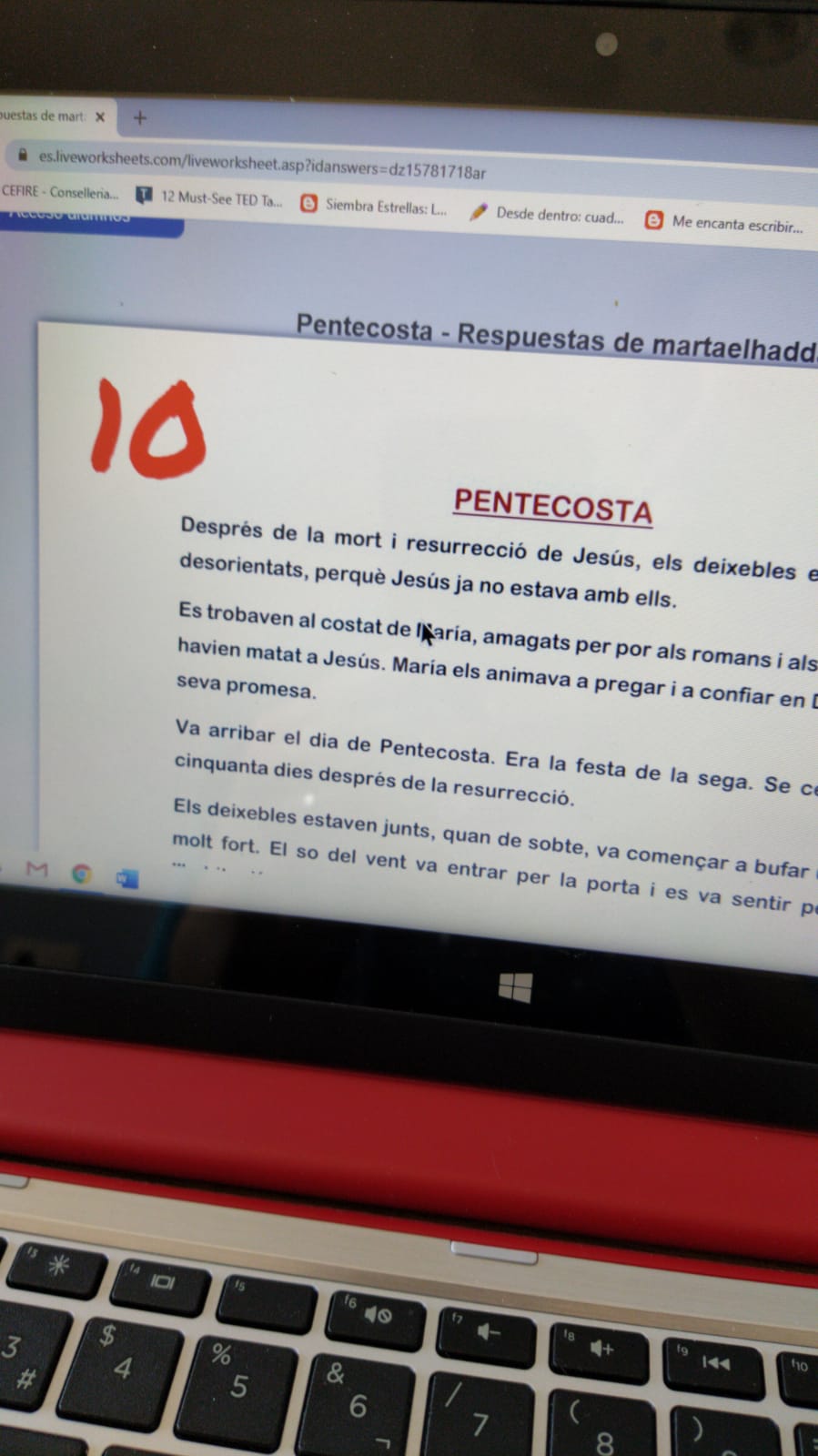 Y otro que está a tocpe y que me manda trabajos todas las semana es Guillem de Gaianes. Además me está mostrando unas capacidades artísticas importantes. Mirad que trabajo más bonito el de pentecostés... También ha realizado actividades interactivas. Gracias Guillem